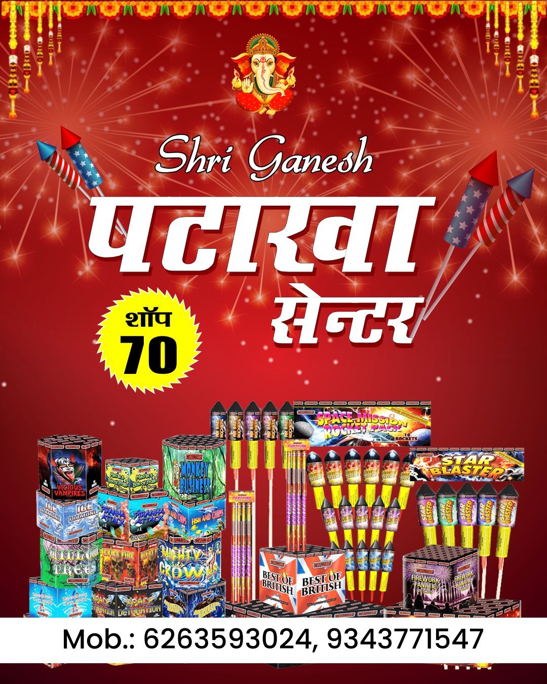 श्री गणेश पटाखा सेंटर (दुकान नंबर 70) पर दीवाली सेल शुरू, पटाखों पर 50% तक की छूट