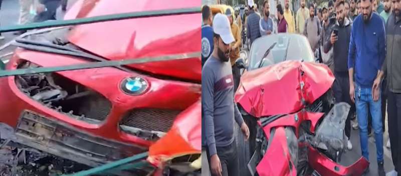 दिल्ली गेट के पास तेज रफ्तार BMW कार डिवाइडर से टकराई, ड्राइवर और बच्चा सुरक्षित